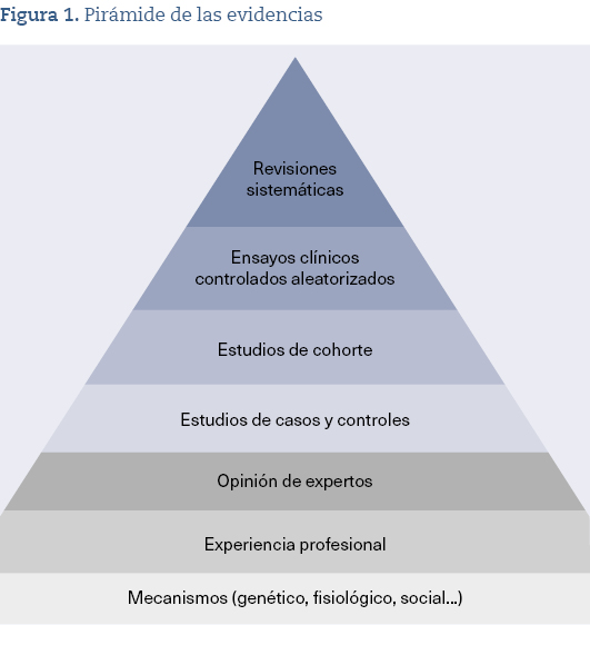 En el marco de la medicina basada en la evidencia (MBE), los ensayos clínicos aleatorizados (ECA) y las herramientas de síntesis del conocimiento —como las revisiones sistemáticas y los metanálisis— son considerados el gold standard en la producción de evidencia clínica. Este conjunto metodológico constituye el ápex jerárquico en la pirámide de la evidencia (figura 1) y orienta las decisiones tanto con pacientes individuales como para el desarrollo de guías de práctica clínica (GPC) y políticas sanitarias1.