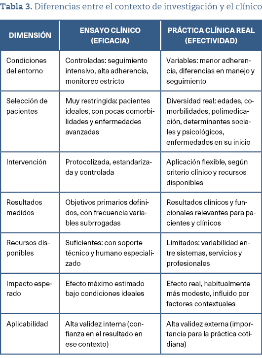 Una vez que tenemos un conocimiento fiable, es necesario que sea aplicable. Sin embargo, aplicar (extrapolar o inferir) un conocimiento obtenido en un contexto experimental a un paciente concreto require un salto epistémico que debe ser reflexionado (tabla 3).