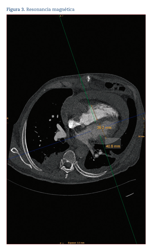 En la analítica, destaca un dímero D de 2322 ng/mL (normalidad: 0-500). Se realiza una angiografía por tomografía computarizada (angio-TC) de arterias pulmonares que descarta TEP, pero en la que se observa un marcado derrame pericárdico y una masa cardíaca de 70x35 mm en la aurícula derecha, que se confirma con un ecocardiograma. El paciente ingresa en la planta de cardiología y se continúa el estudio con una resonancia magnética (RM) en la que se aprecia que la masa infiltra la pared libre de la aurícula derecha con invasión del pericardio visceral (figura 3). Durante la realización de dicha prueba el paciente presenta deterioro clínico con hipotensión, por lo que, ante la sospecha de taponamiento cardíaco, ingresa en la unidad coronaria, donde se le realiza una pericardiocentesis urgente, obteniéndose 1 litro de líquido hemorrágico con anatomía patológica negativa para células tumorales. Más tarde se completa el estudio con una tomografía computarizada (TC) toraco-abdomino-pélvica en la que se observa una lesión expansiva (LE) sólida, hipocaptante en el segmento 6 del hígado, sugestiva de metástasis, que en la tomografía por emisión de positrones (PET)-TC no presenta significado patológico y se repite la RM cardíaca que muestra una masa sugestiva de angiosarcoma. Se realiza una punción con aspiración de aguja fina (PAAF) de la LE hepática que, con técnicas de inmunocitoquímica, resulta positiva para los marcadores CD34 y CD31, compatible con angiosarcoma.